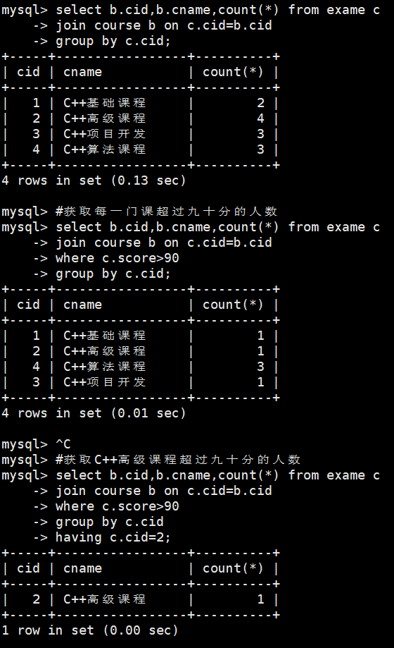 #2、cid=2这门课程的考试平均成绩&每门课程考试的平均成绩+课程信息