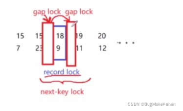 record lock:记录锁,就是行锁 gap lock:间隙锁,不包含记录本身 next-key lock:record lock(记录本身) + gap lock(不包括记录本身)
